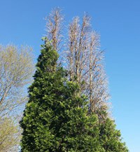 >> CHEWED LEAVES OR NEEDLES, MILD TO SEVERE LEAF LOSS, AND BRANCH DEATH WITH NO REGROWTH ON EVERGREENS