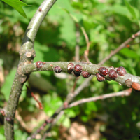 >> LEAF CURLING, TWIG DIEBACK, STUNTED GROWTH, A SUGARY SUBSTANCE CALLED “HONEYDEW,”BLACK, SOOTY MOLD